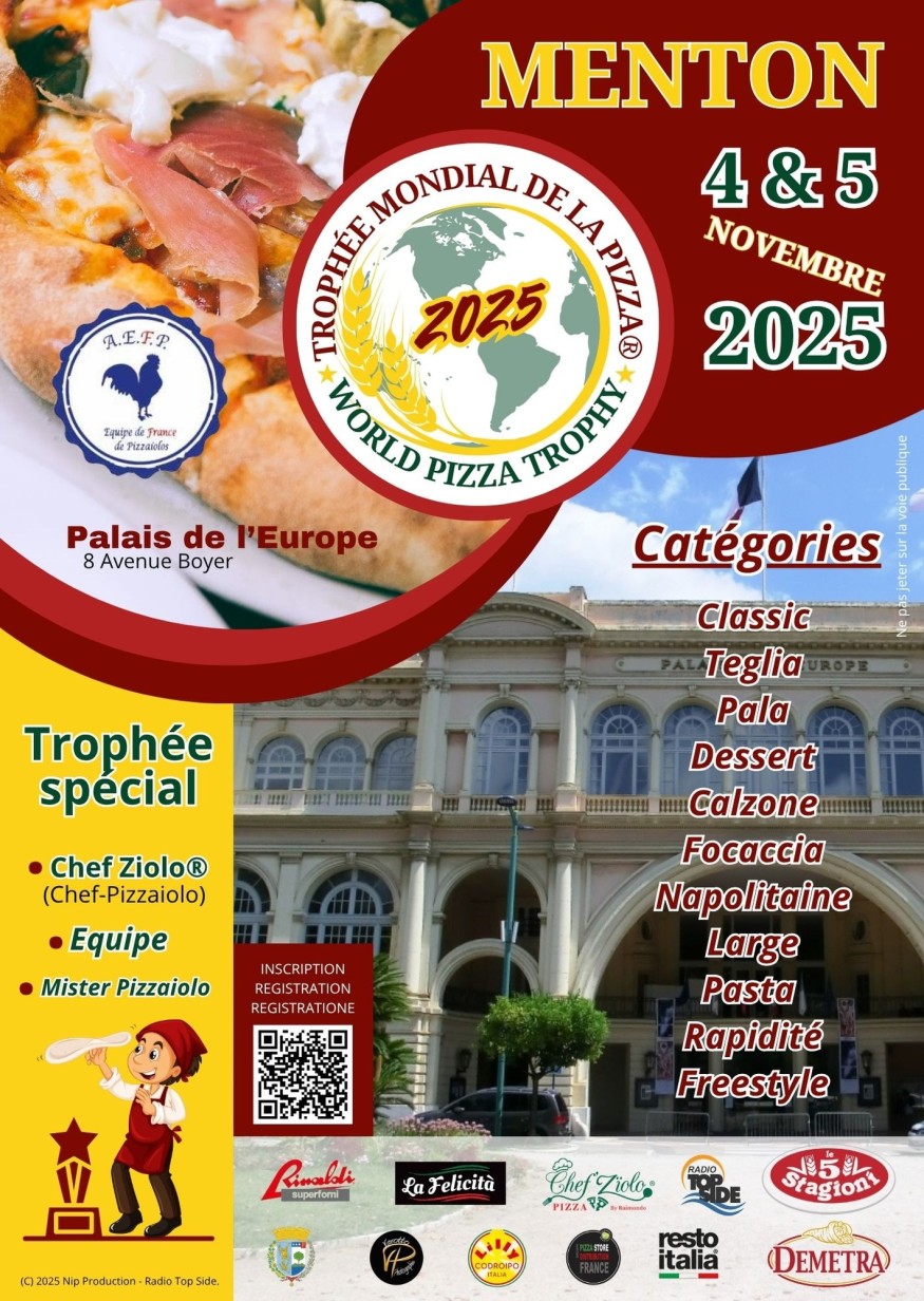 Menton se prépare à accueillir l’un des événements gastronomiques les plus attendus de l’année ! Les 4 et 5 novembre 2025, le 2ᵉ Trophée Mondial de la Pizza Multi-catégories s’installe au Palais de l’Europe, sous l’impulsion du chef Ziolo (Laurent Raimondo) et de son association Équipe de France de Pizzaïolo, née ici même à Menton.