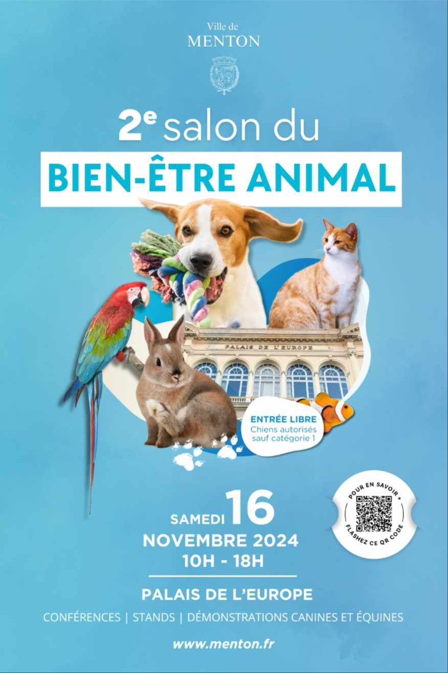 La Ville de Menton organise la 2ème édition du Salon du bien-être animal le samedi 16 Novembre 2024.