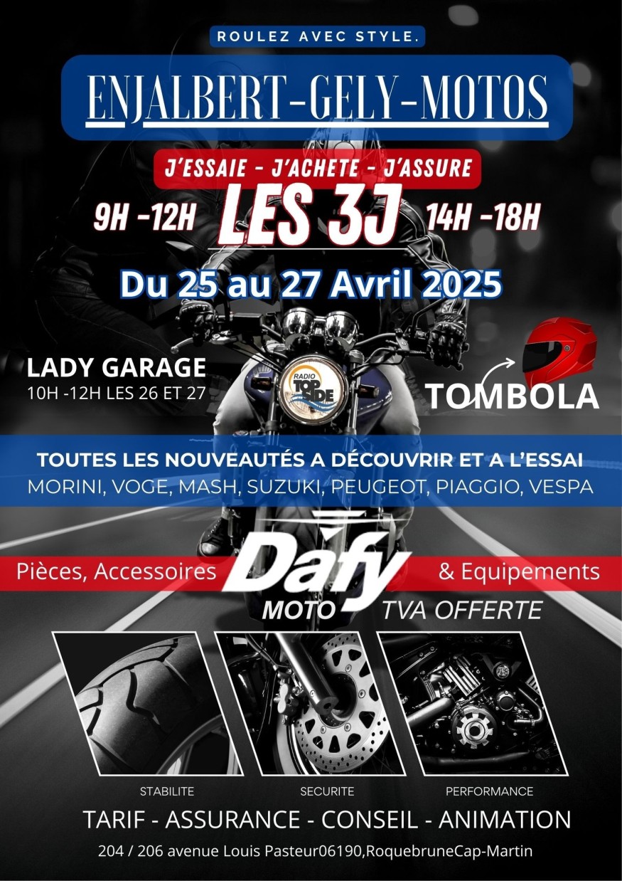 3J Moto chez Enjalbert – Gely Motos, du 25 au 27 avril à Roquebrune-Cap-Martin.