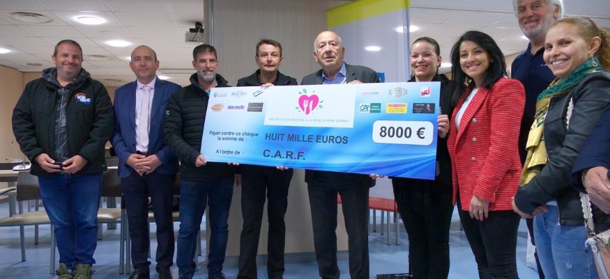 À travers l'association Nos Restos de Menton à la Roya: le même combat, ils ont remis un chèque de 8000 euros pour les commerçants et restaurateurs de la vallée de la Roya; Somme correspondante aux 10% des bénéfices réalisés lors de cet évènement.