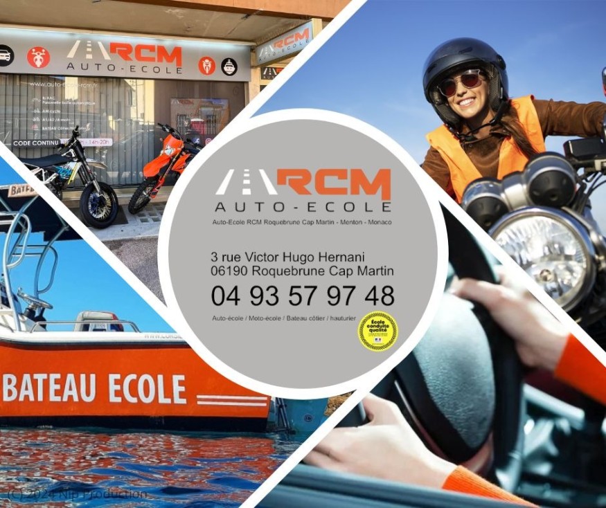 L' Auto-École RCM est installée à Roquebrune-Cap-Martin entre Menton et Monaco dans le département des Alpes-Maritimes depuis 1995,  titulaire du label de qualité.