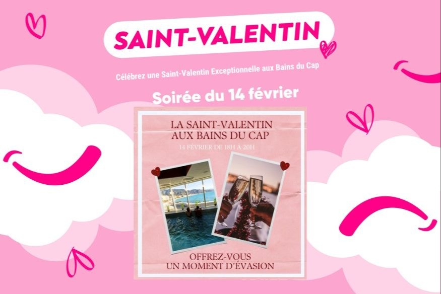 Les Bains du Cap proposent aux couples une soirée unique en l'honneur de la Saint-Valentin, une expérience qui promet romance et détente, le mercredi 14 février de 18h à 20h.