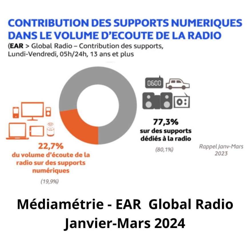 Cette augmentation de l'audience de la radio sur les supports numériques est principalement due à l'utilisation du téléphone mobile, qui compte 5,9 millions d'adeptes quotidiens. Parmi les autres supports, les enceintes à commande vocale séduisent 1,5 million d'auditeurs chaque jour, tandis que les ordinateurs sont choisis par 1,4 million d'auditeurs, les deux se tenant ainsi au coude-à-coude. 17,2 % de la population âgée de 13 ans et plus.