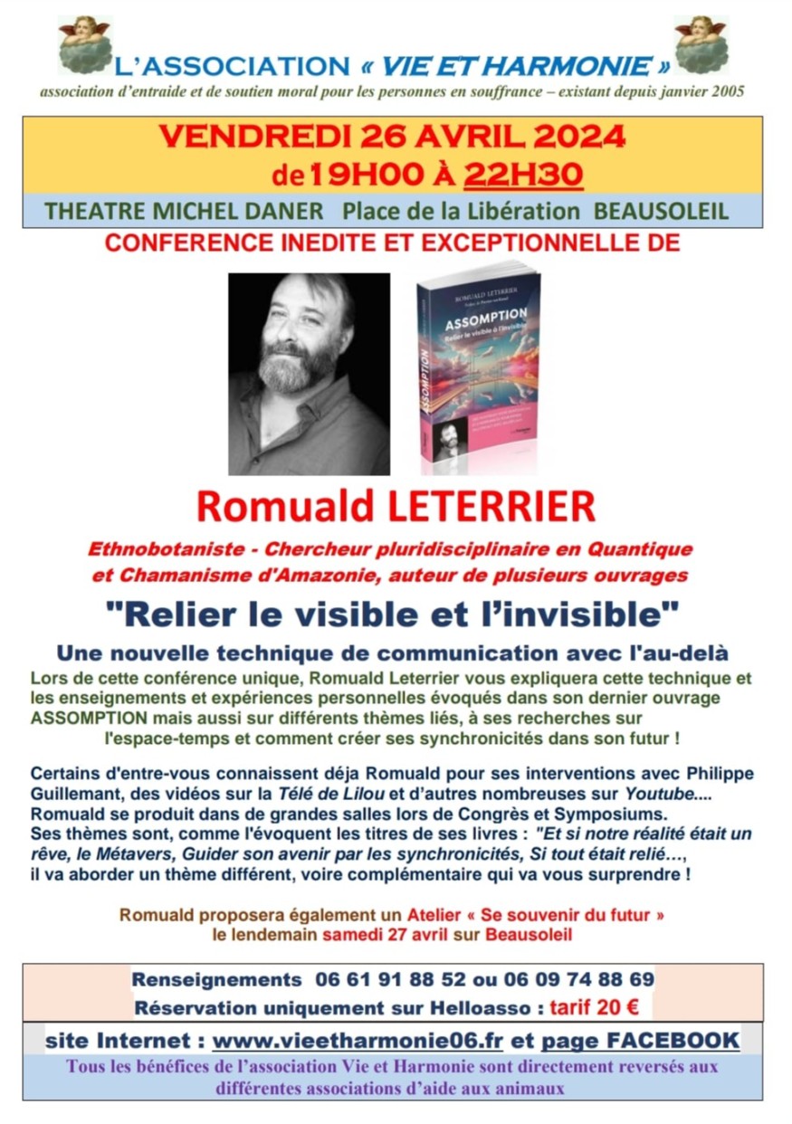 Romuald proposera également un atelier "le souvenir du futur" le lendemain samedi 27 avril sur beausoleil.
