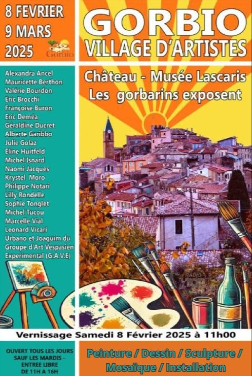 Les artistes gorbarins vous invitent à découvrir leurs œuvres – peinture, dessin, sculpture – dans le cadre enchanteur du Château-Musée Lascaris.