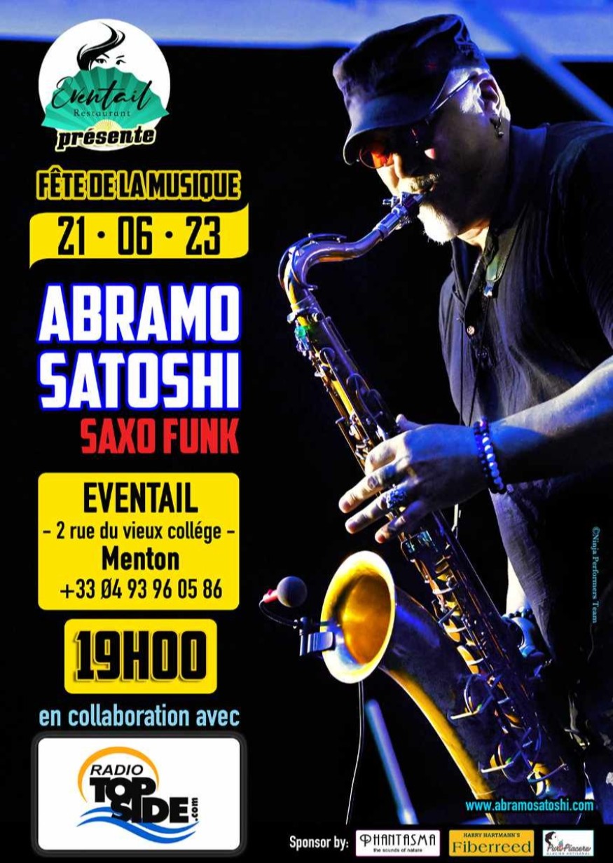 Votre diner asiatique, accompagnée pour la fête de la Musique du live Saxo Funk d’Abramo Satoshi Saxophoniste de renom  à  partir de 19h !
