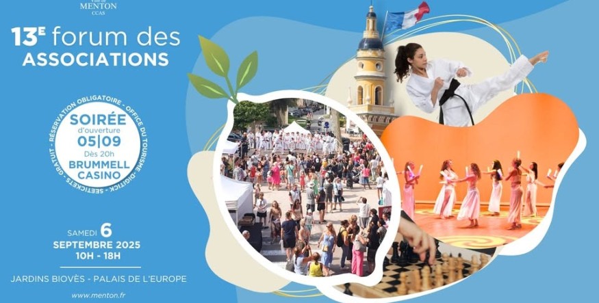 Le lendemain, de 10h à 18h, le Palais de l’Europe et les jardins Biovès accueilleront les stands des nombreuses associations mentonnaises. Un rendez-vous idéal pour aller à la rencontre des bénévoles, découvrir leurs activités et pourquoi pas, trouver l’activité qui correspond à vos envies pour toute l’année.
