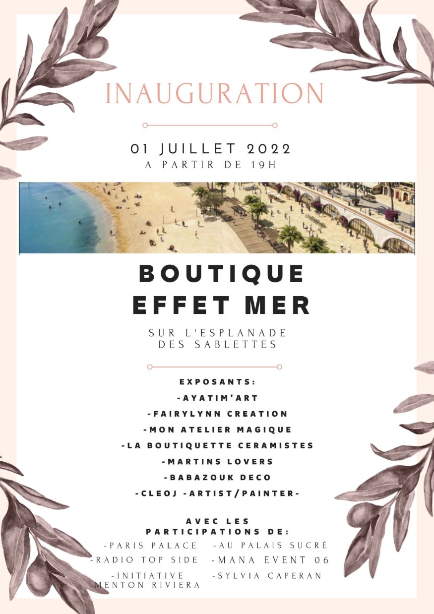 La boutique éphémère nouvelle édition” Effet Mer” Inauguration vendredi 1er juillet à partir de 19h