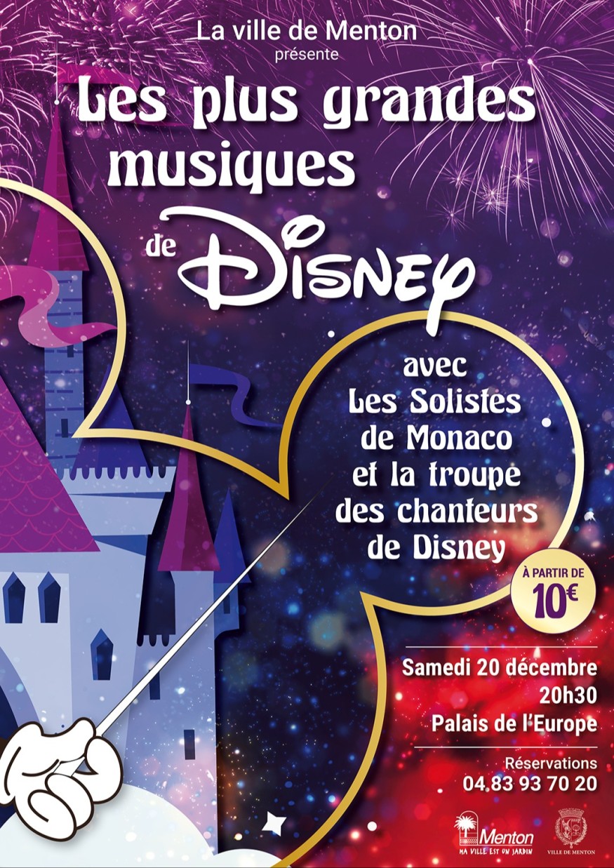 Ce concert grandiose propose un véritable voyage enchanté à travers les classiques animés intemporels et les œuvres les plus récentes de l’univers Disney. Pendant que les images de vos héros préférés défileront sur écran géant, les musiques seront interprétées en direct par les Solistes de Monte-Carlo, orchestre symphonique issu du Philharmonique de Monaco.