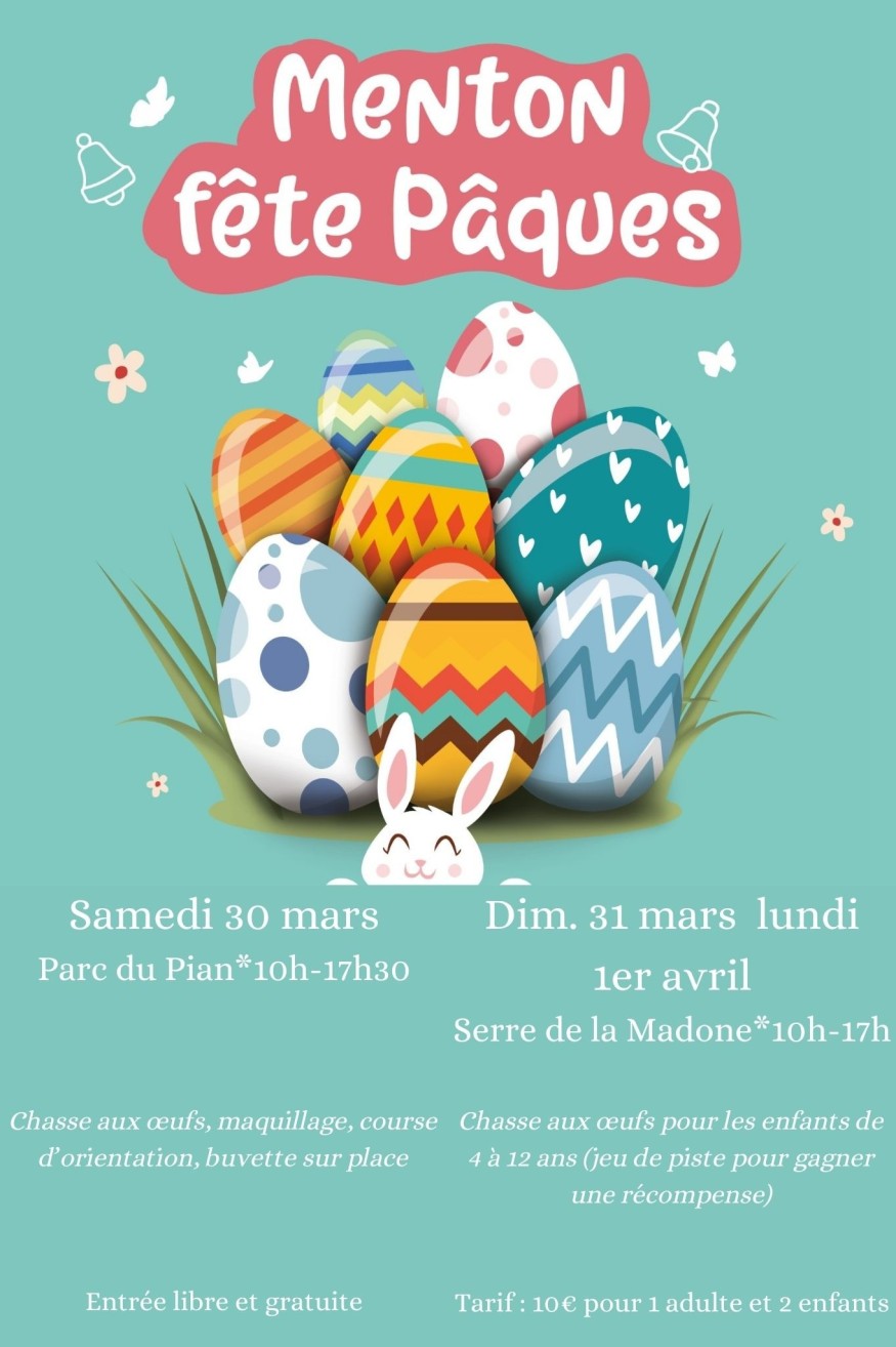 À l'occasion des fêtes de Pâques, les animateurs du service Jeunesse de la Ville de Menton vous donnent rendez-vous pour une grande chasse aux œufs, au parc du Pian.