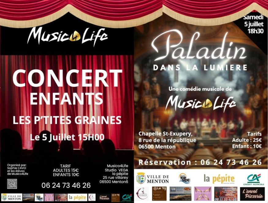 Samedi 5 juillet, Musico4Life vous donne rendez-vous à la Chapelle Saint-Exupéry, à Menton, pour deux événements exceptionnels !