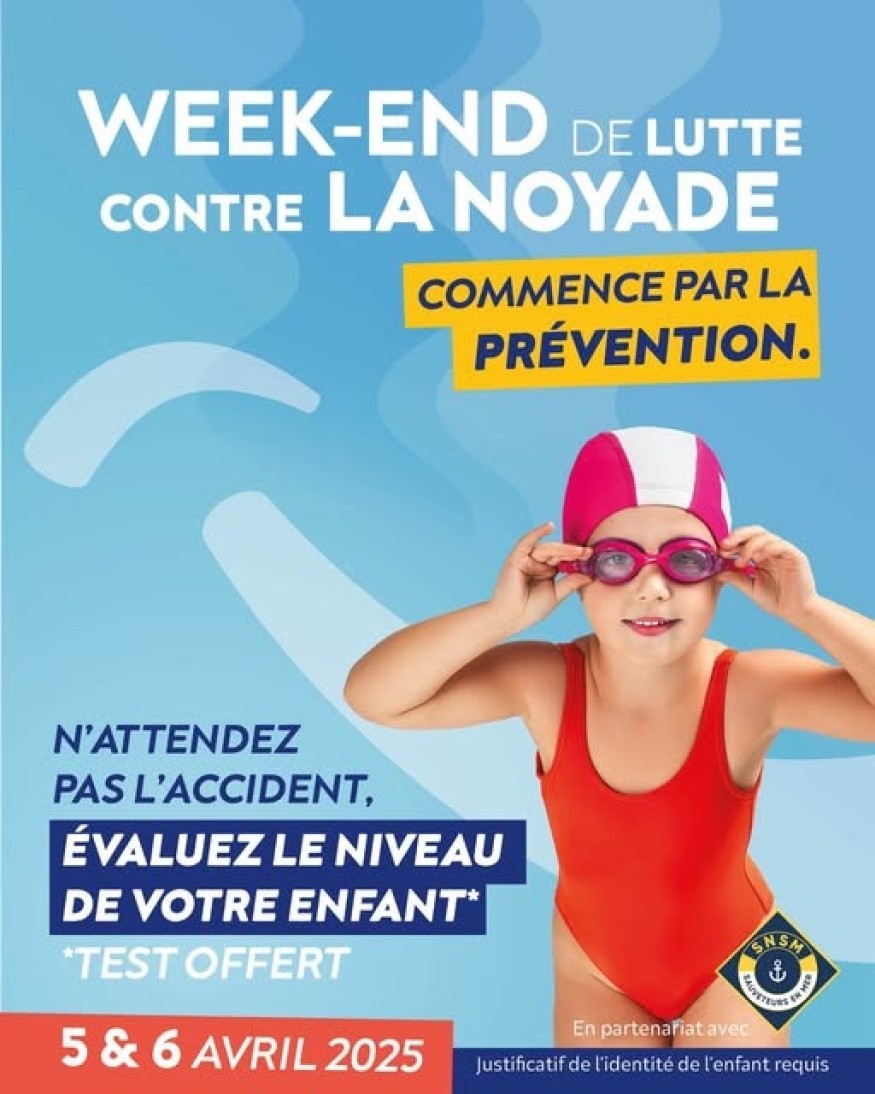 Testez votre niveau et celui de votre enfant !Durant tout le week-end, la SNSM vous propose d’évaluer gratuitement votre niveau de natation ainsi que celui de votre enfant. L’objectif : être bien préparé face aux risques de la noyade et gagner en assurance dans tous les environnements aquatiques.