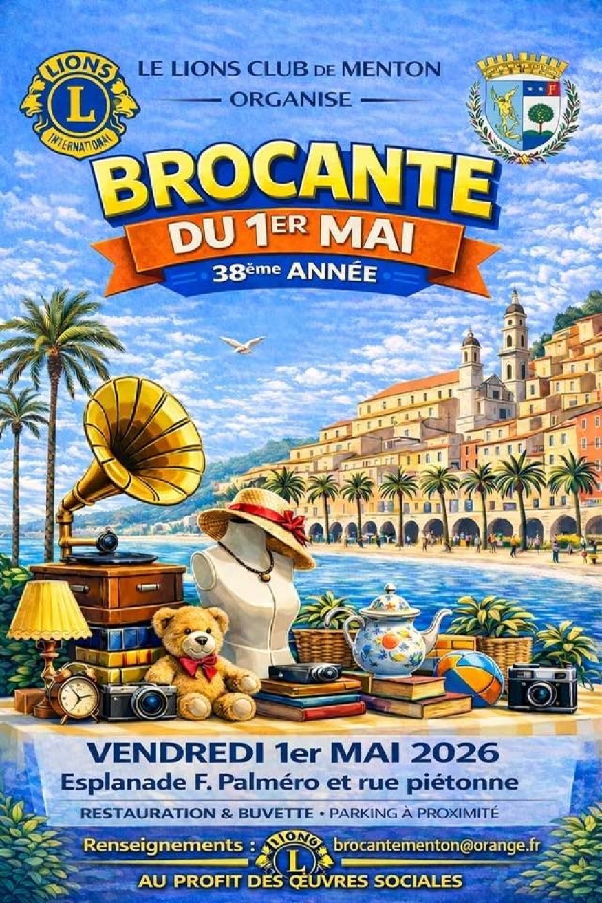 La traditionnelle brocante du 1er mai fait son grand retour à Menton pour sa 38ᵉ édition, organisée par le Lions Club de Menton.