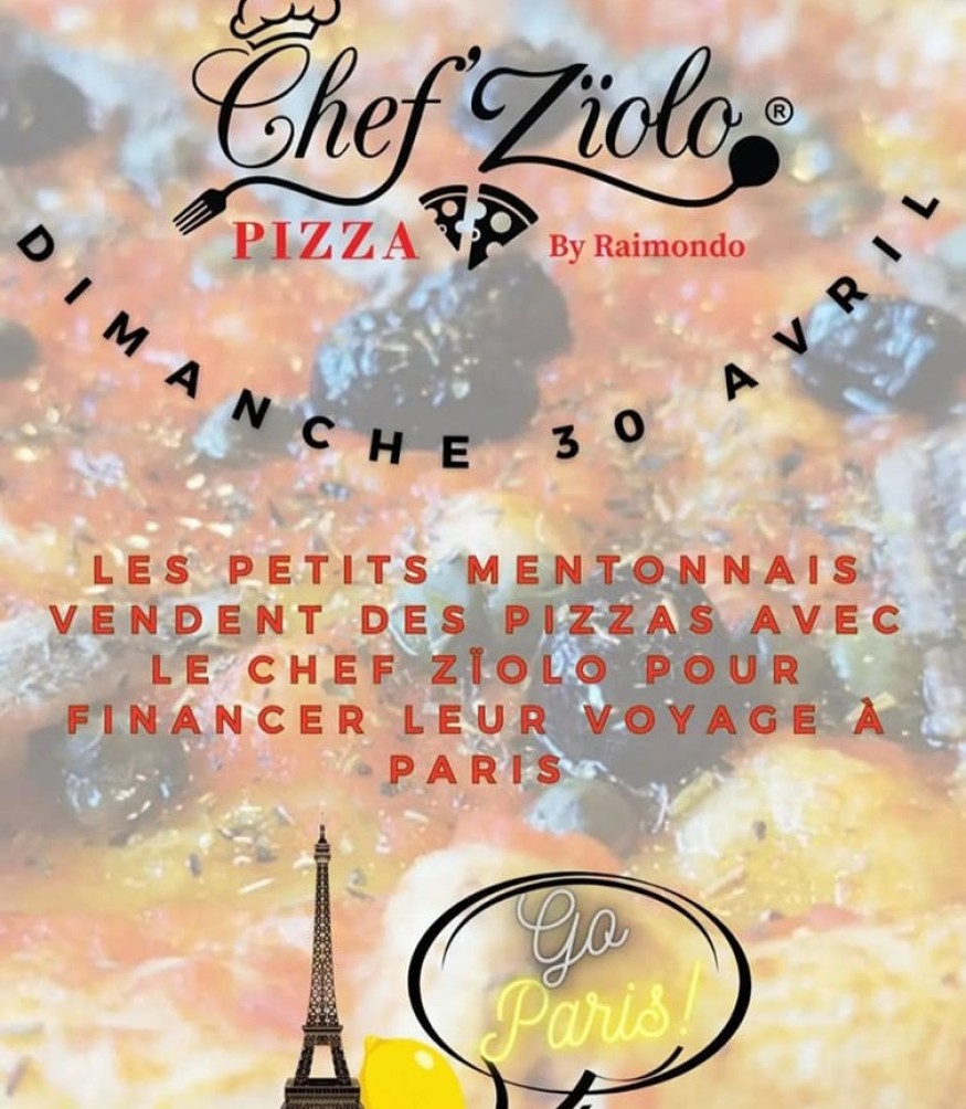 Ce dimanche 30 Avril les petits Mentonnais vont vendre des pizzas chez Chef Ziolo, 21 avenue de verdun pour financer leur voyage à Paris.