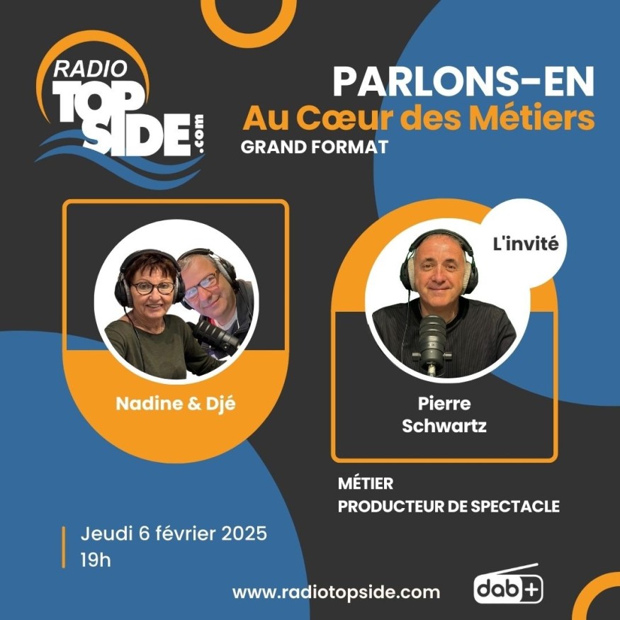 l’invité de Nadine Torcolo dans les studios de Radio Top Side. Producteur de spectacles, il partagera avec nous les coulisses de son métier passionnant.
