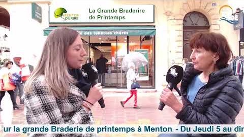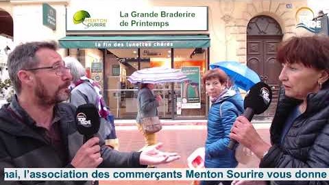 Deuxième journée de la grande braderie de printemps organisée par l’association des commerçants de Menton Sourire. En direct dans le studio mobile de Radio Top Side sur la place St Roch au micro de Nadine Torcolo. Géraldine Fort du restaurant l'Embuscade et Céline du Restaurant Maria Grazia, responsables de l'événementiel de l’association Menton Sourire.