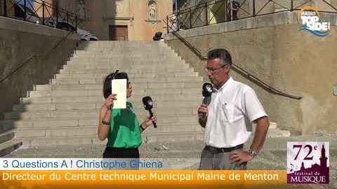 Christophe Ghiena, Ingénieur en Chef Directeur du Centre technique municipal de la Mairie de Menton au micro Nadine sur Radio Top Side. Menton s’apprête à accueillir les plus grands noms de la musique classique pour la 72e édition de son prestigieux festival qui se tiendra Du 31 juillet au 13 août Il se déroulera sur le parvis de la basilique Saint-Michel Archange ou l’on retrouve Christophe Ghiena le Directeur du Centre technique municipal de la Mairie de Menton au micro Nadine sur Radio Top Side....