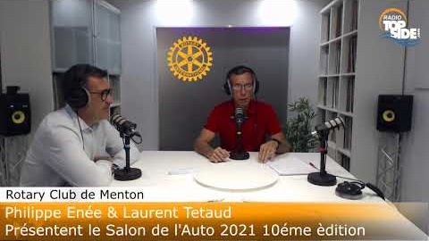 Nous avons eu le plaisir de recevoir sur Radio Top Side cette semaine, Laurent Tetaud président du Rotary Club de Menton et son adjoint au protocole Philippe Enée pour nous présenter la 10eme édition du salon de l’auto de Menton. SALON AUTO - 10ème Édition Samedi 11 et dimanche 12 septembre 2021 au Stade Rondelli à Menton. Organisé par le Rotary Club de Menton avec le soutien de la Ville dans le cadre idyllique de Menton Garavan, au stade Rondelli. Exposition et essais, Food truck ,Crazy Kart, Animation musicale, Live Djs et plateau radio sur scène avec encore des surprises à......