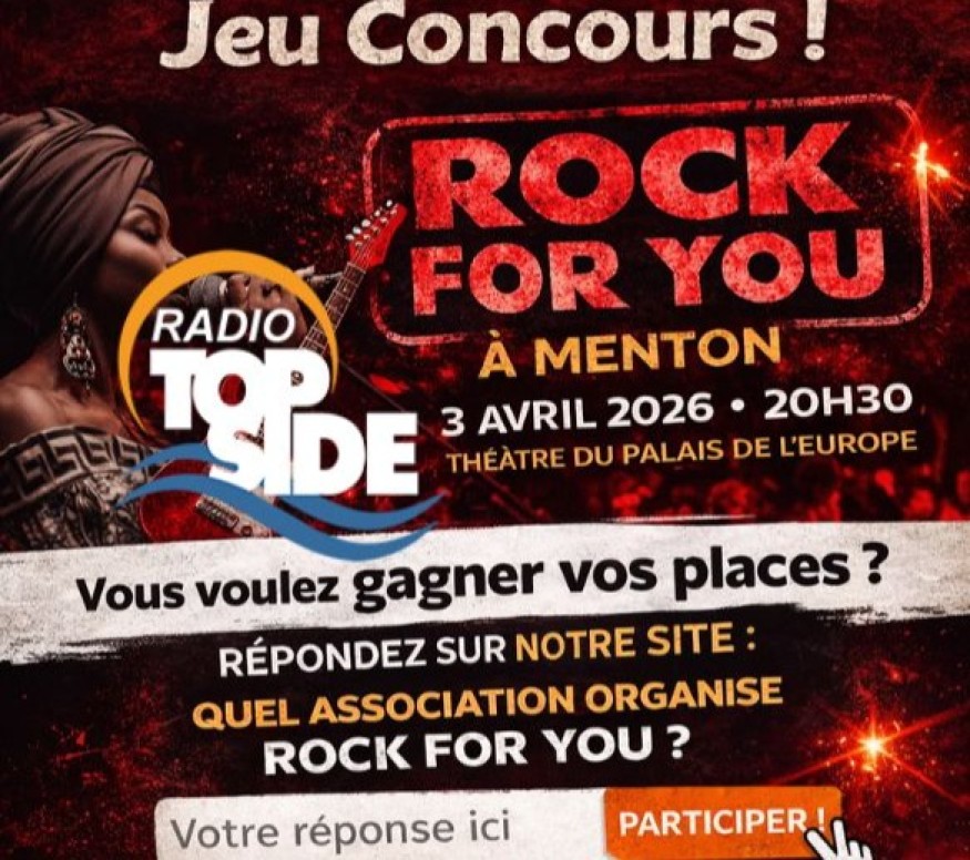 À l’occasion du concert ROCK FOR YOU, qui se tiendra le vendredi 3 avril 2026 à 20h30 au Théâtre du Palais de l’Europe à Menton, tentez de gagner vos places dès maintenant.