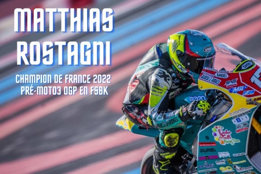 Pour cette nouvelle saison, notre jeune champion Mentonnais Matthias Rostagni participe au FIM JUNIOR GP et a besoin de votre soutien. Un peu d’histoire: Matthias est né à Monaco le 13 décembre 2007. Il vient d’avoir 15 ans. Il a pratiqué beaucoup de sport depuis son jeune âge comme la moto, le basket, le judo, le taekwondo, le handball, le ski, le golf depuis quelques mois. Actuellement il s'entraîne sur Menton 3 à 4 fois par semaine avec son coach, Maxime Brandimarte, ancien boxeur qui a sa salle de boxe anglaise à Menton. Il pratique la moto depuis ces 5 ans, licencié depuis ses 6 ans, au Mc Sospel Motos......
