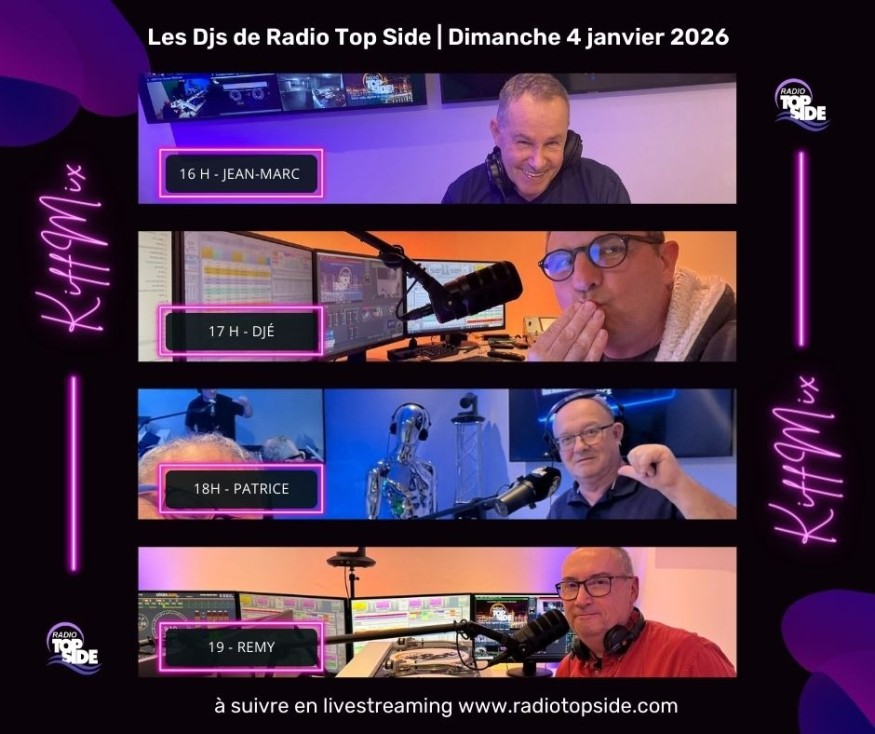 Pour célébrer ce début d’année comme il se doit, les DJs de Radio Top Side se relaieront en direct de nos studios, aux platines, pour faire monter l’ambiance et prolonger la magie des fêtes.