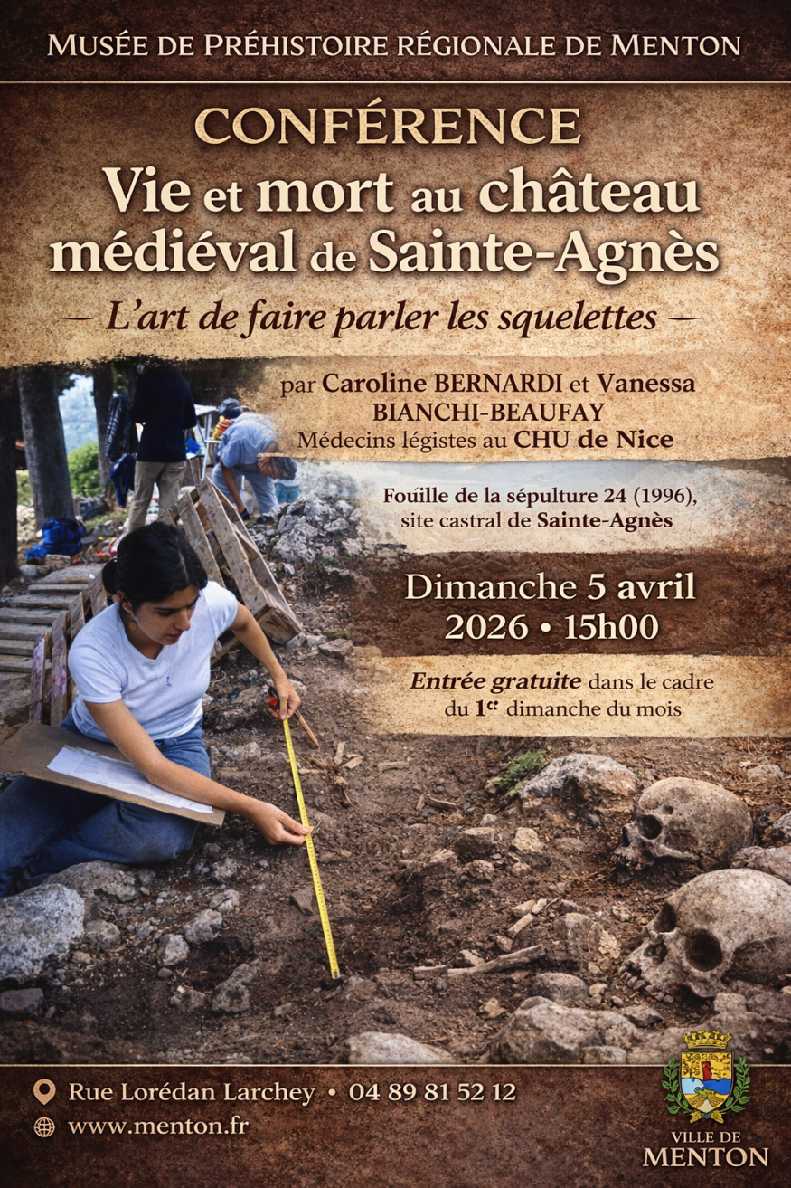 Le Musée de Préhistoire Régionale de Menton propose une nouvelle conférence gratuite le dimanche 5 avril 2026 à 15h00, autour d’un sujet fascinant mêlant archéologie et médecine légale :